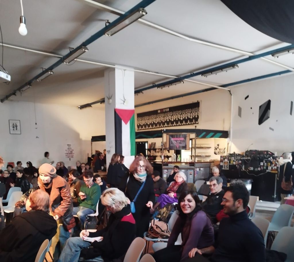 ESC Atelier autogestito si trova in Via dei Volsci, tra San Lorenzo e il Verano. Era un antico magazzino abbandonato, occupato finalmente nel 2004. Si tratta, più precisamente, di uno spazio bianco, di un non-luogo divenuto spazio di azione, di mostre e discussioni politiche, culturali, sociali. Tutt’intorno, quadri post-moderni e un bel manifesto grafico di “Potere Operaio”, su cui le parole diventano disegno astratto, in perfetto stile costruttivista. Ben visibile, su una colonna portante a base quadrata, la bandiera della Palestina.